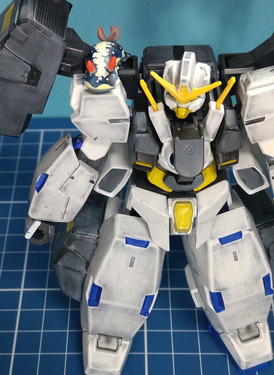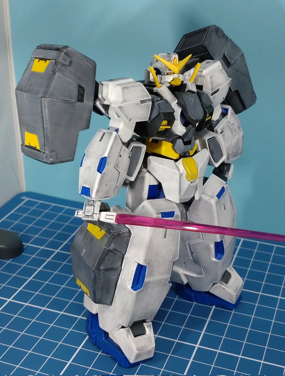 #ガンプラはどんな自由な発想で作ってもいいんだ #今年作ったプラモ晒そうぜ #ガンプラの画像貼るとRTされると聞いて 「俺の考える最強にカッコいいアデルを作る」計画完了! 名付けて「雨水アデル(うすいあでる)」!!甘水専用機!! 中〜長距離得意でパワーより素早さ重視な機体です。