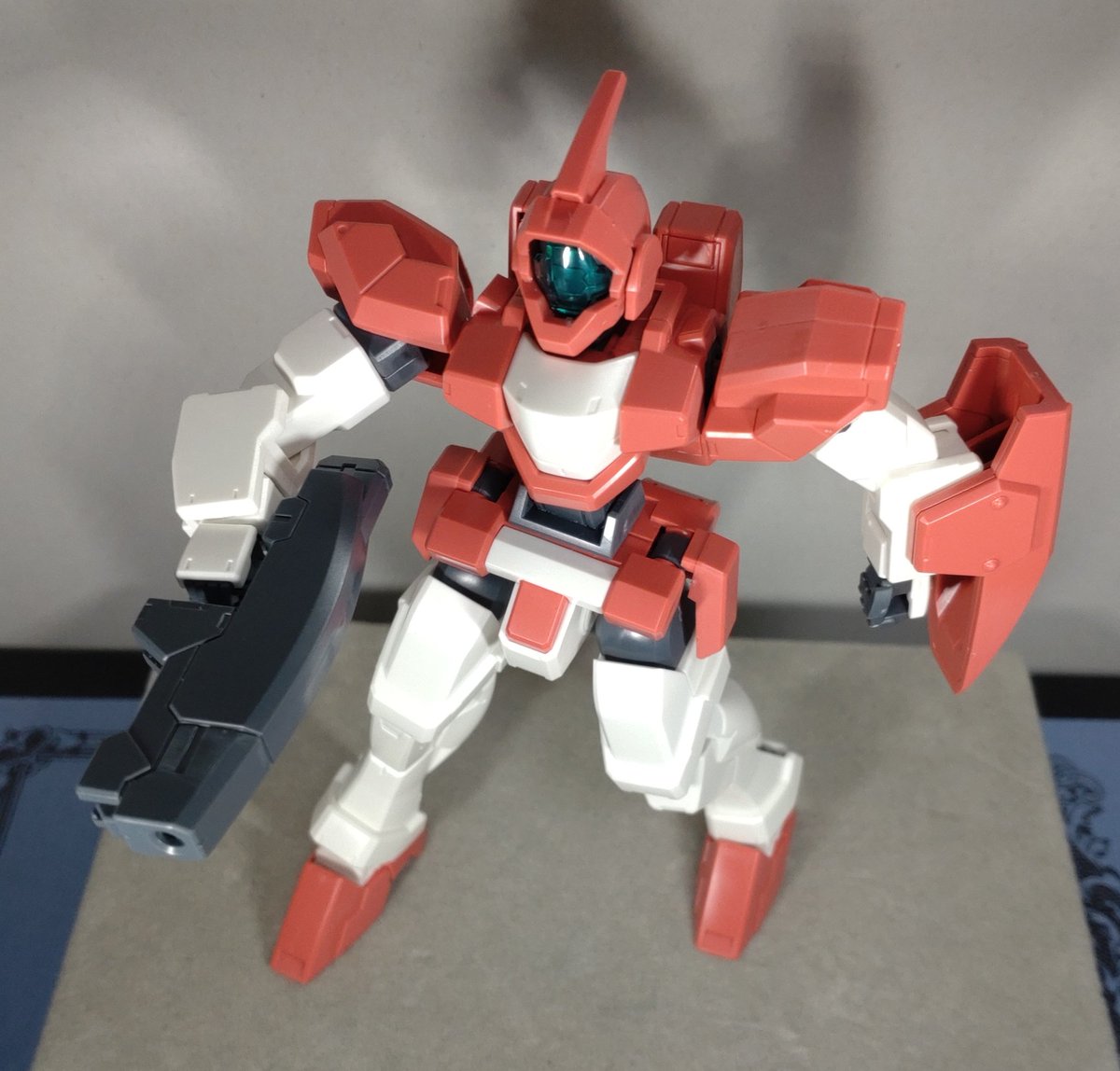 #ガンプラの画像貼るとRTされると聞いて #ガンプラ 一旦ミキシングによる自家用機の製作作業を休憩(という名の現実逃避)し、ジェノアスⅡを半月ほど前からちまちま進め、謎の疲れやら猫様の妨害やらに邪魔されつつやっと素組み完成! このままで十分かっこいいけど、傷加工と墨入れで仕上げる予定