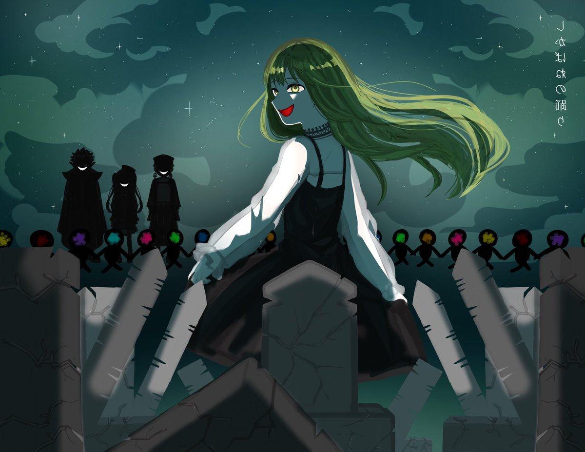 墓場で踊りましょう #森中びじゅつかん 趣味でオカ研にしちゃった 色迷ったので2枚