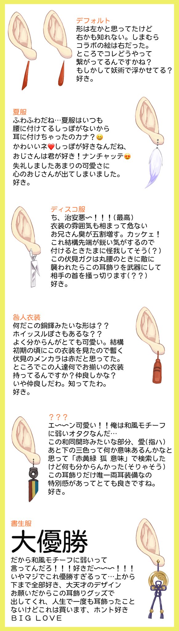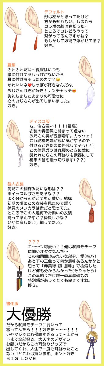 #絵ガク 伏見ガクの耳飾りが好きだという話 めちゃくちゃに個人の感想 まだ新衣装配信も全部見れてないのでどこかで耳飾りについての言及あったら教えて下さい〜🙏