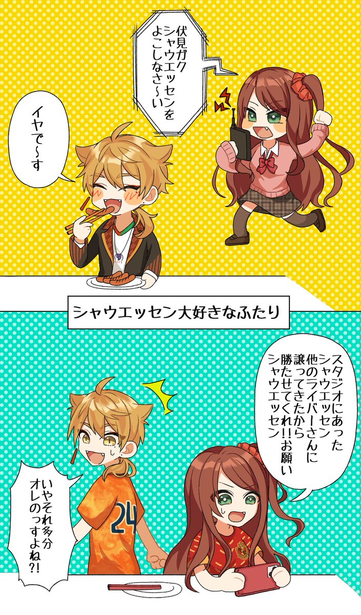 🦊「あげないって言ったのに〜!www」 #絵ガク #赤羽絵葉書 実はとても好きなコンビ オカ研楽しみだね〜〜☺️☺️