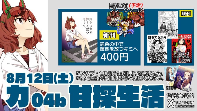 23 54 【コミックマーケット102のお品書き】 1日目カ04b「甘探生活」でお待ちしております! 追加情報などはツリーにて! #C102 #C102お品書き 23/08/09 16:21