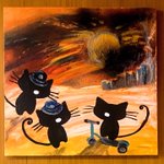 @jilla_or_jp #オリジナル切手シート の図案(イラスト)に応募します ①めでたそうな鏡赤富士(アクリル画) ②茂みの中に隠れてる黒猫(アクリル画) ③黒猫達の冬の公園(グラフィック) ④月の兎は黒猫のコスプレバイト(アクリル画×グラフィック) #jillaJP #イラストレーター #イラストレーションの日2023