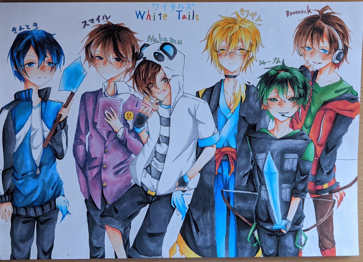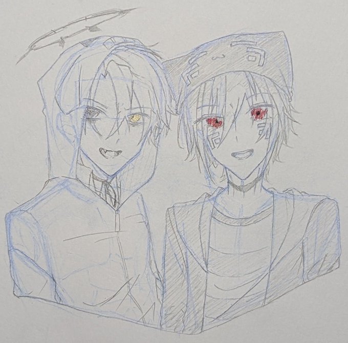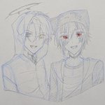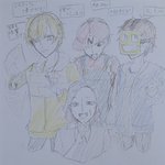 #50人イラフト #koutanアート #蜘蛛スケッチブック なっしーさんはFAタグが分からない… ラフの線は残したままだし色塗りも雑な落書きですがm(_ _)m (この3人が一緒に喋っているのを初めて聴いた時、似すぎててガチでびっくりしました)