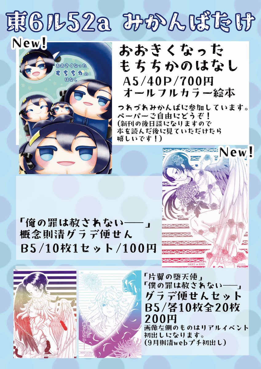 スペース:東6ホール ル52a サークル名:みかんばたけ お品書きとペーパーの準備はこれからですが無事脱稿しましたのでオールフルカラーな三日月さんに片思いしているまんばちゃん+おもちの新作みかんば絵本あります!既刊も持って行きます! #つれづれみかんばに参加します