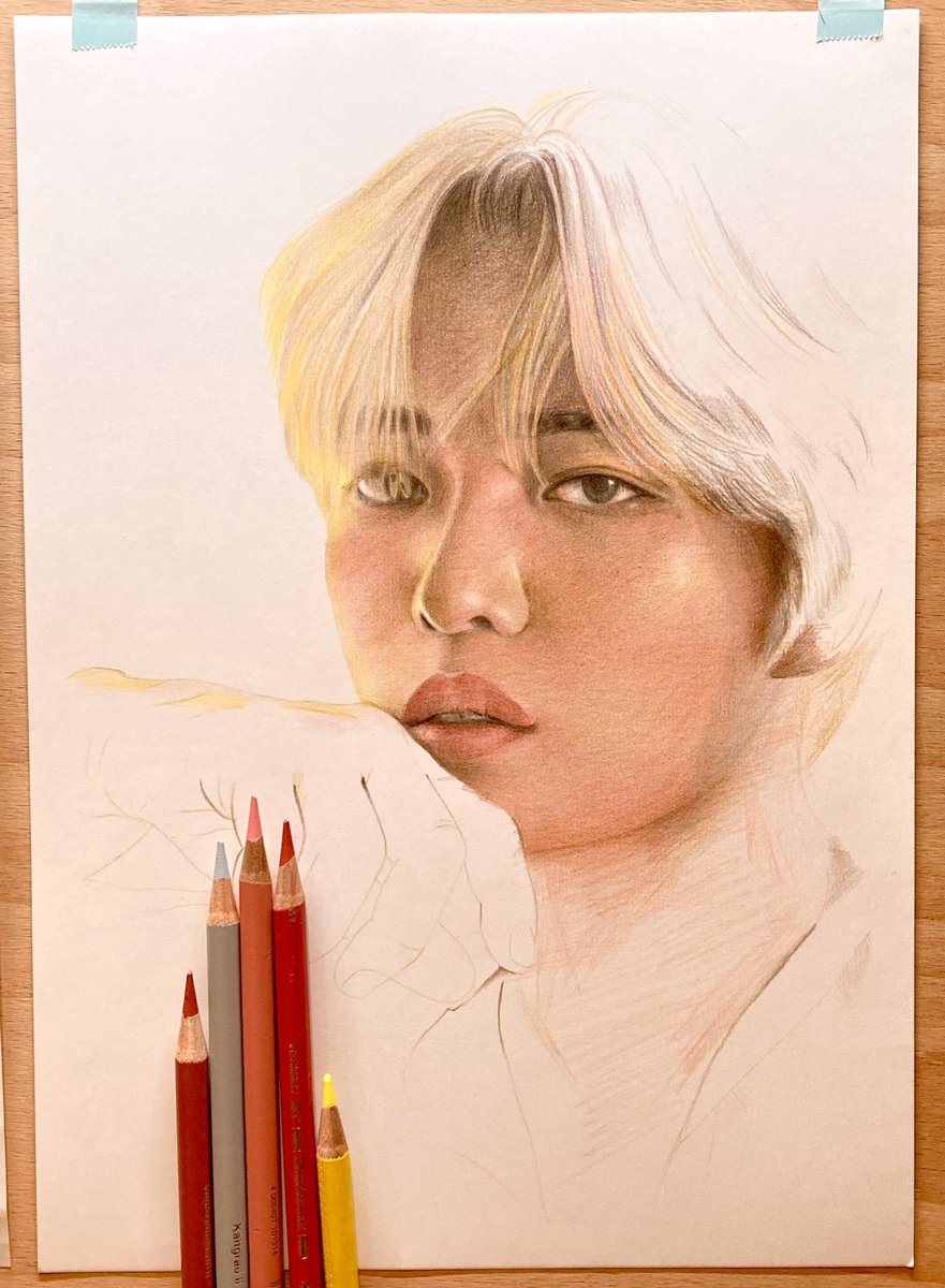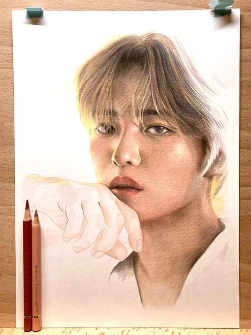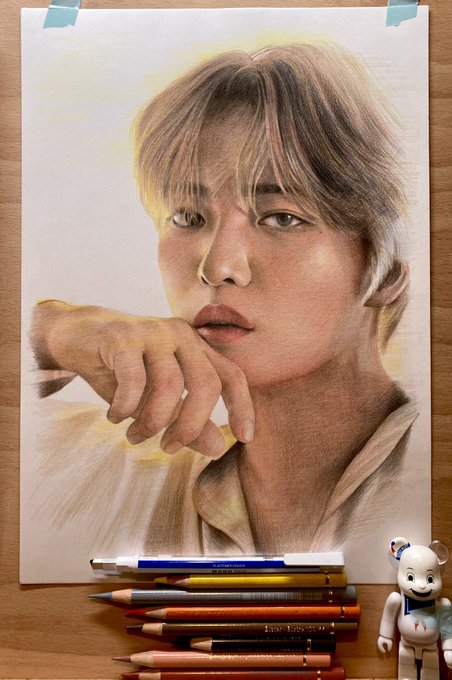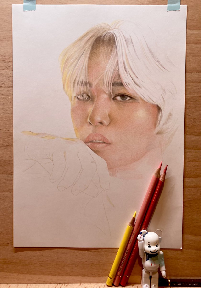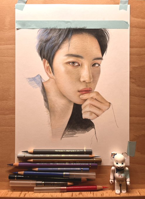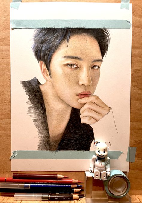 9 45 今日も塗り重ね✏️ うまく色が乗らない😭 ファーバーカステルは淡い色の絵を描く色鉛筆なのかなぁ。。 台湾ジェジュンを見た後で、まるで別人みたいなこのジェジュンを描いてると頭がバグります😂 #ジェジュン #色鉛筆画 23/03/06 00:25