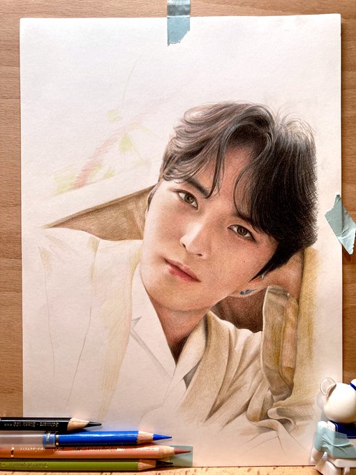 6 16 写真に撮ると、びっくりするくらい進んで無いですが😂 #ジェジュン #色鉛筆画 23/03/02 00:40