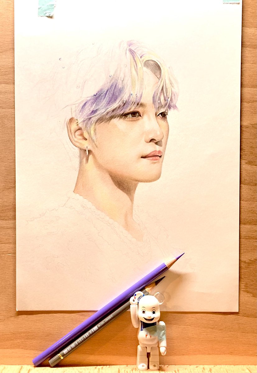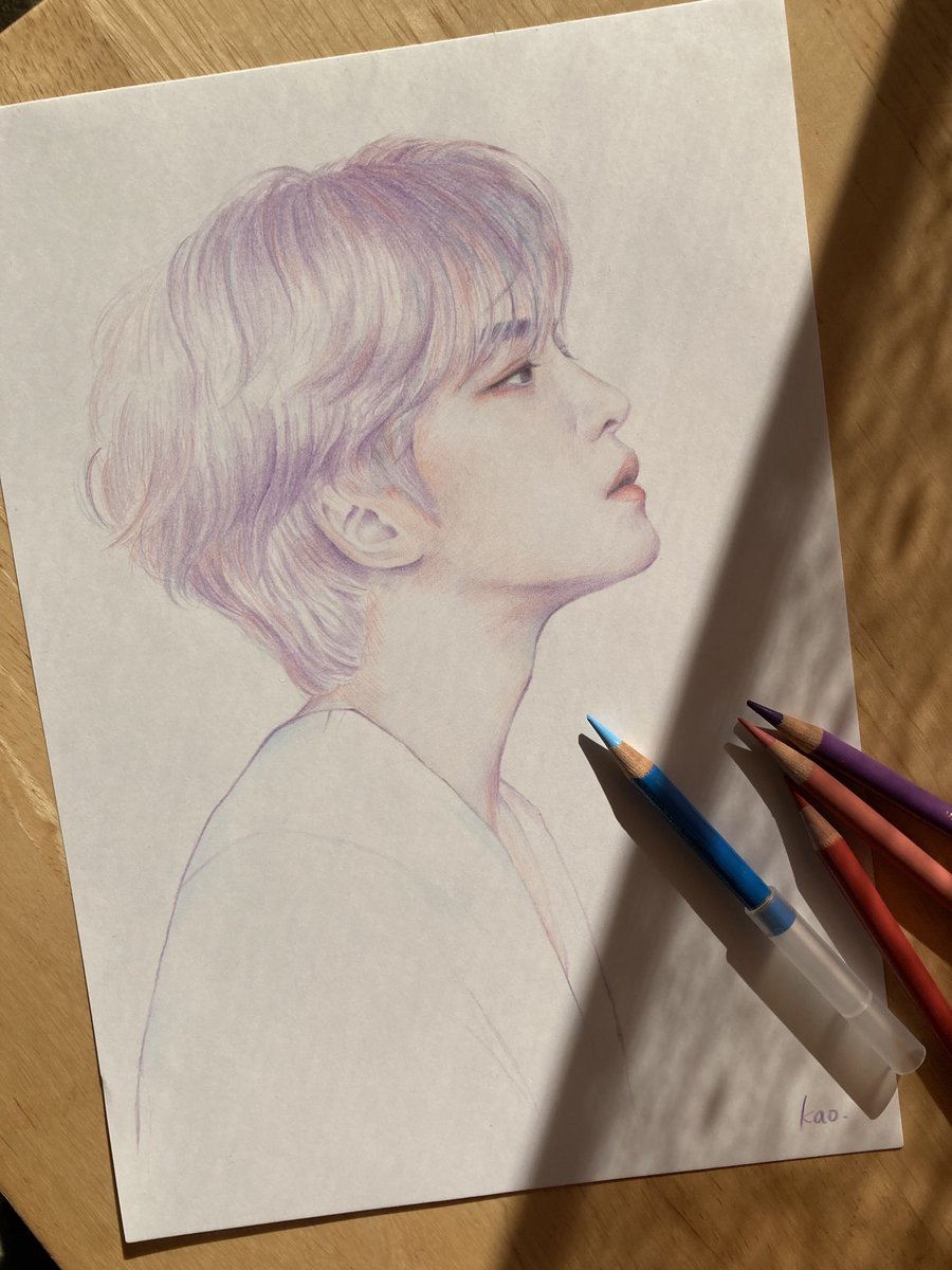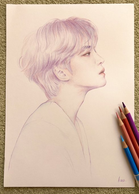 変わり映えなくてごめんなさい😅 今日も1時間✨✏️ いつも使ってる色鉛筆に パープルが無くて😅💦 そこだけ別の色鉛筆で。 イメージしてる髪質が出ない💦 色鉛筆を買いたしたい‼️ #ジェジュン #色鉛筆