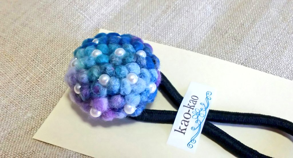 1 18 グラーデーションにはこだわっています。全く違う作業だけれど やっぱり絵を描く感覚と少し似ているかな。 #羊毛フェルト #ヘアゴム 完成しました♪ 19/05/30 16:58