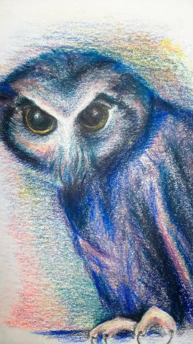 0 9 ぴい子さんは、アフリカオオコノハズクの男の子。フクロウって、どこかネコに似ているなぁといつも思います。 #色鉛筆画 20/08/18 17:58