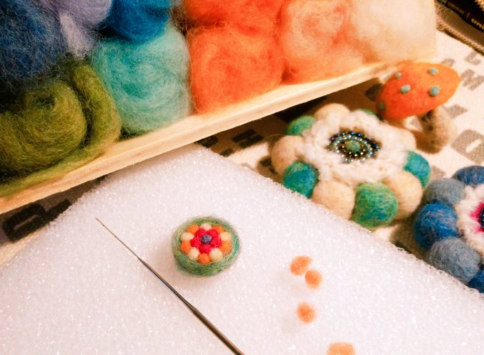 いつ針に糸が通せなくなるのだろうとドキドキしているのだけれど、まだ大丈夫みたい。近眼も関係あるのかな?長い間お待たせしてしまったブローチが完成し、昨日ようやくお届けすることができました。とても喜んでくださり、心の底から嬉しく思います。感謝です。 #羊毛フェルト #ブローチ