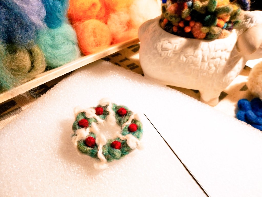 久しぶりに作品を展示させていただくことになりそうなのでチクチクしてる。 ミニミニリース🎄 #羊毛フェルト