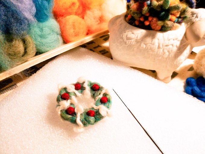 0 12 久しぶりに作品を展示させていただくことになりそうなのでチクチクしてる。 ミニミニリース🎄 #羊毛フェルト 21/12/12 00:31
