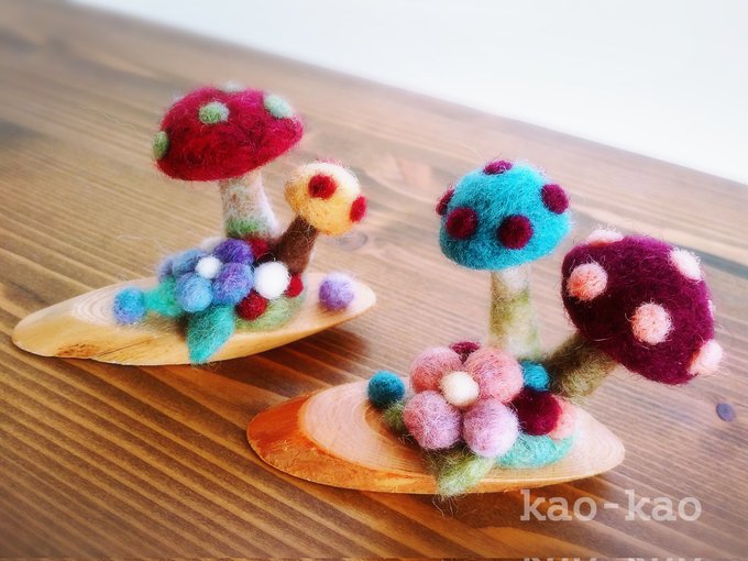 昔よく読んだ絵本に出てきたような世界が今でも大好きです。kao-kao の作品にはどこかそんな雰囲気が出ているのかなぁ…と。 新作🍄明日納品させていただきます✨😌✨ 心を込めて... #羊毛フェルト