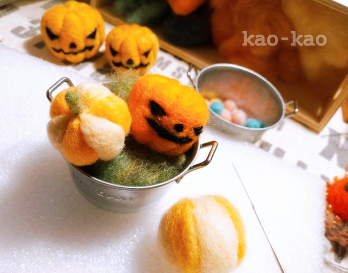 お次はカボチャ🎃 チクチク チクチク… #羊毛フェルト #ハロウィン #カボチャ
