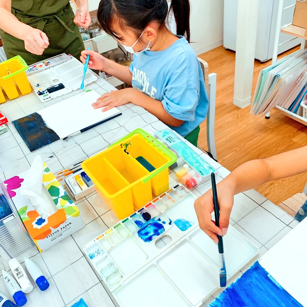 絵画教室、無事終了しました。9月のテーマは「星空」。水彩絵の具を使ってみんな素敵に仕上げてくれました。みんな違ってみんないい!それぞれ絵の具を絞り出すパレットを見ているとこちらもワクワクしてきます。楽しんでもらえて嬉しい。感謝✨ 次回は17日です。😊🎨 #絵画教室 #水彩画 #星空