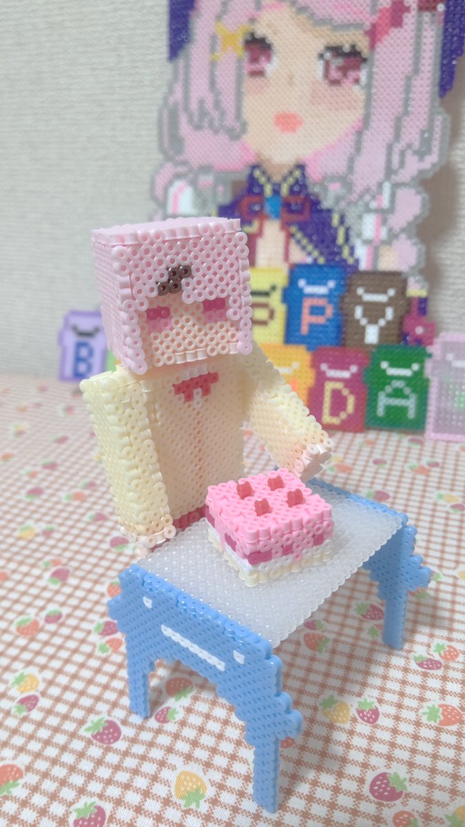 2 24 🥳🥳🥳しぃしぃお誕生日おめでとう🎉🎉🎉 アイロンビーズで作ってみた作品その2 マイクラ風しぃしぃとケーキ🎂 #しいなーと 21/04/17 00:01