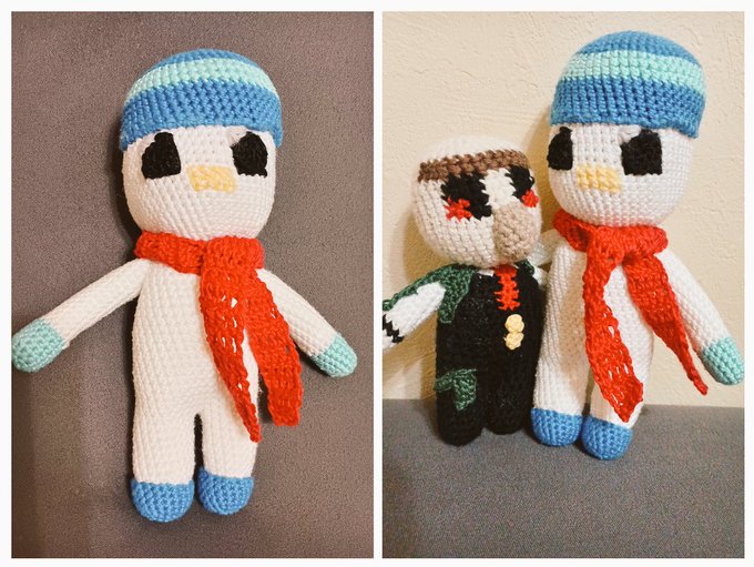 #見るかもわからん おらふくんあみぐるみ☃️ やっとこさ完成したー!! 前に作ったおんりーチャンと並べると大きさがww