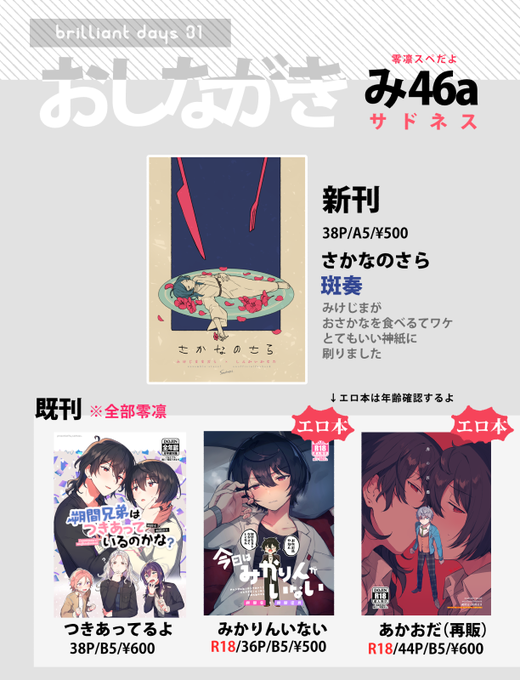 3月21日ブリデ31の斑奏のほん 全年齢 スペースはみ46aのサドネス サンプルの続きpixiv pixiv.net/artworks/96976… こっちは通販 ec.toranoana.jp/joshi_r/ec/ite…