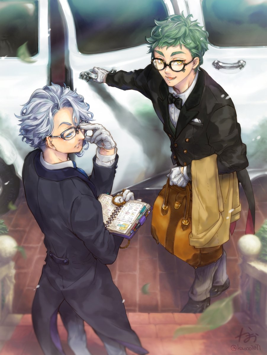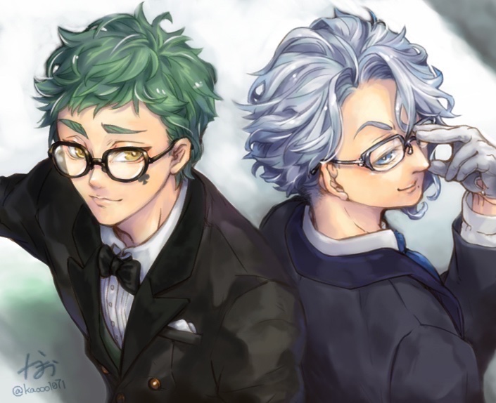 #twst_執事企画リターンズ3 えと様のtwst執事企画に参加させていただきました💪私好み全開な眼鏡コンビ執事です(笑)👓✨2枚目はおまけ(別表情ver.) 憧れの企画に参加できて嬉しい…🥹ありがたや〜🙏✨ #twstファンアート #ツイステファンアート