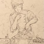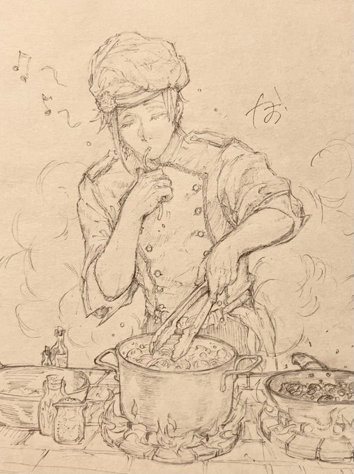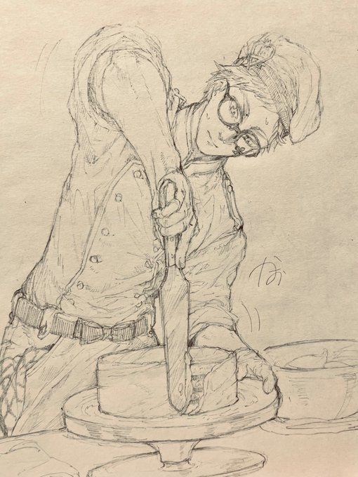パティシエ♣️先輩rkgk! 資料見ずに描いたのでこの手の専門の方にご覧になってたら素敵にスルーしていただきたい(´∀`; )パティシエの生クリーム塗る姿ってカッコイイよねー🥰💞💞 #ツイステファンアート #twstファンアート