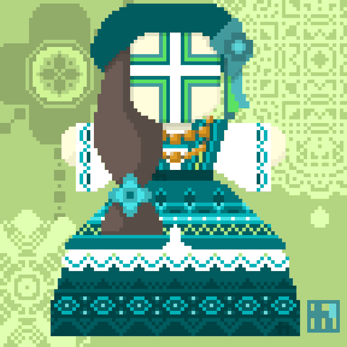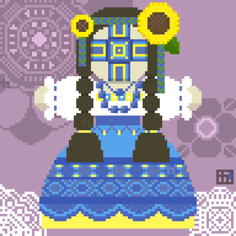 調べて見たら🇺🇦にも魔よけ人形『モタンカ』というのがあるそうです。描かずにはいられなくなり、気が付けば朝😑 #8bitpainter #pixelart #digitalart #ドット絵 #モタンカ