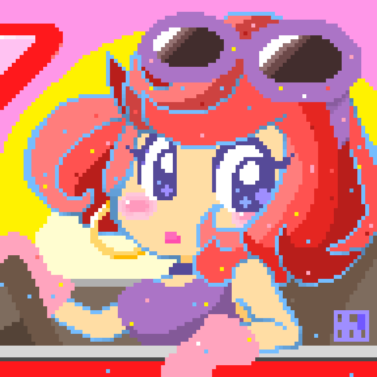 Steampunkなうさギターちゃん🎵🟦🟨 一旦ここで完成!歪んでるけど😅まだまだ修行せねばっ👓 #steampunk #8bitpainter #pixelart #ドット絵 #お絵描き #digitalart