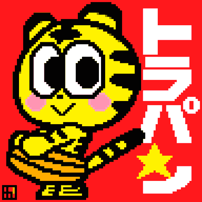 キャラクターデザイナー井上さん@HISATOonHashtag のキャラ『トラパン』ちゃん🎵 #トラトラパンチ #アニマル保育園 #ドット絵 #8bitpainter #pixelart #digitalart