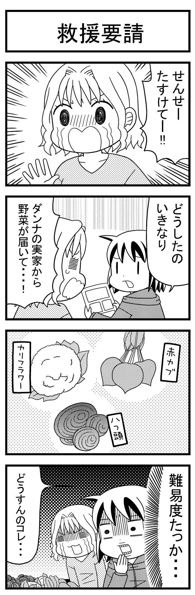 前回の4コマの続きです ブロッコリー、白カブ、里芋だったらいけるんだけどさぁ! 上位互換(?)がくるとは思わなかったよね! #漫画がよめるハッシュタグ #4コマ漫画