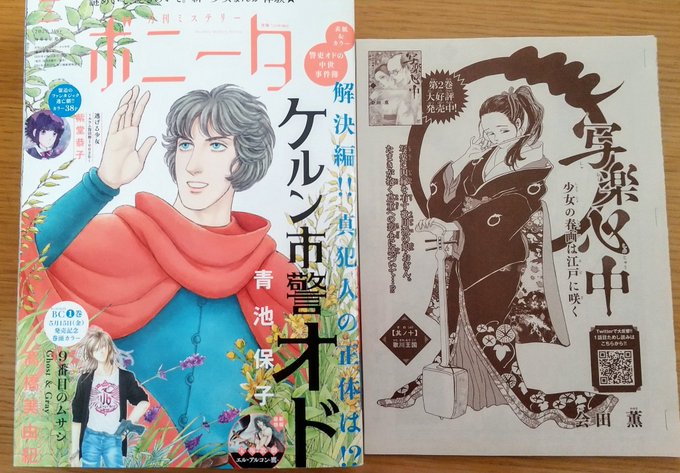 10 28 【お知らせ】本日ミステリーボニータ5月号発売です!今回の写楽心中は「歌川大国」。歌川派のドタバタを描いておりますが個人的には山村美紗サスペンスにありそうなお家騒動をイメージして描きましたwどうぞよろしくお願い致します☺️ 20/04/06 17:16