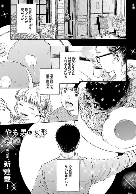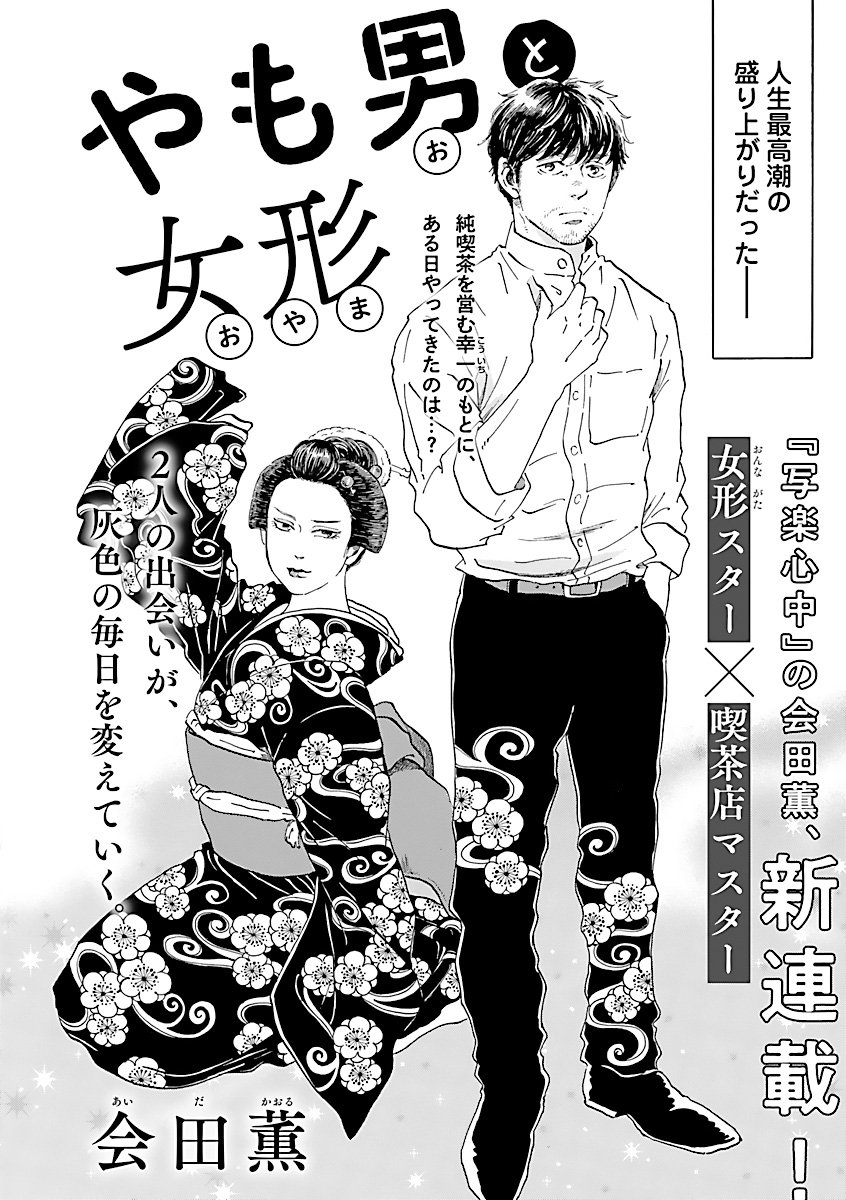36 102 【告知】遅くなってしまいましたがエレガンスイブ8月号にて新連載「やも男と女形」が掲載されております!喫茶店のやも男マスターの所へ女形スターが転がり込むお話です。読んでくださると嬉しいです〜❣️ 22/06/27 17:56