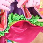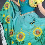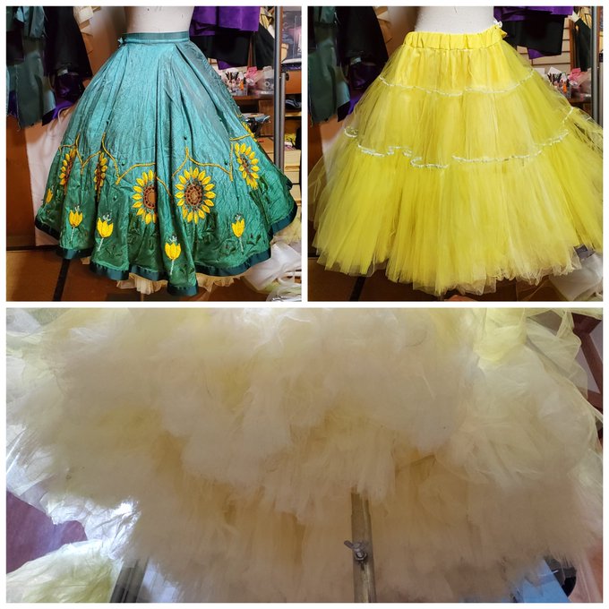 フリルふわふわはだいすきー!刺繍も黙々作業できるからすき。ひたすら目の前のものに一つ刺して縫い込み、ミシン縫い込み、染めも色合い出すの楽しいから失敗よくするけど、結果出せるからたのしい! #繋がらなくていいから私の作った衣装を見てくれ