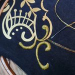 式典服の刺繍始めましたー👏😊 今は生地が手に入らないし、柄は刺繍するかも?の為に図案化してたからこのまま刺した方がいいなと! 刺繍久しぶりでさし目はまだ安定しないけど2.3日で戻ってきたらいいな! #馨はただ今お針子中