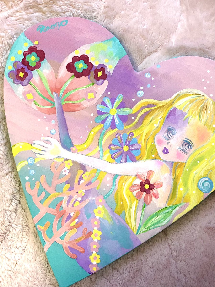 人魚ちゃん🧜♀️💕 お花が生けてある貝殻を見つけてビックリしています🐚🌷🌟 #drawingart #kawaiigirl #アート好きな人と繋がりたい #美術ネットワーク #芸術の輪 #夏の創作クラスタフォロー祭り