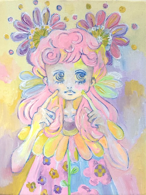 ミルキーネオンカラーが好き🌼 華やかだけど、淡い🧚♀️ #絵柄が好みって人にフォローされたい #冬の創作クラスタフォロー祭り #みんなで楽しむTwitter展覧会 #アナログ絵 #アクリル画 #かわいいイラスト