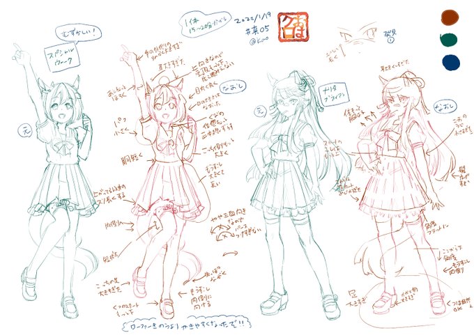 #おはクロ 真004 youtu.be/40iQ6yzF0wE おはようクロッキー@gogogorirarara ソシャゲ立ち絵クロッキー、ウマ娘公式サイトより。好きキャラと元気ポーズ。鋭角多い!自分の手ぐせは角度が緩すぎ。しっかり体系で頭身ありつつ、かわいいデザインは説得力あってさすが! #クロッキー 171回目
