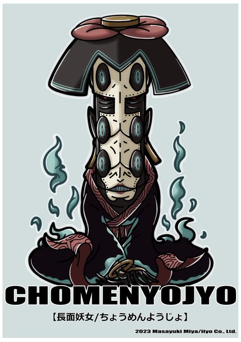 #カパ太郎は散歩中 妖怪no.350 『#長面妖女/ちょうめんようじょ』 見た感じは少し気味悪いが、特別何かをするワケでもない。 木陰に座っていると落ち着くらしい。 >Instagram instagram.com/kapataro114/?h…… #イラスト #illustration #Japan #art #character #妖怪 #Yokai #Monster #Goblin #요괴