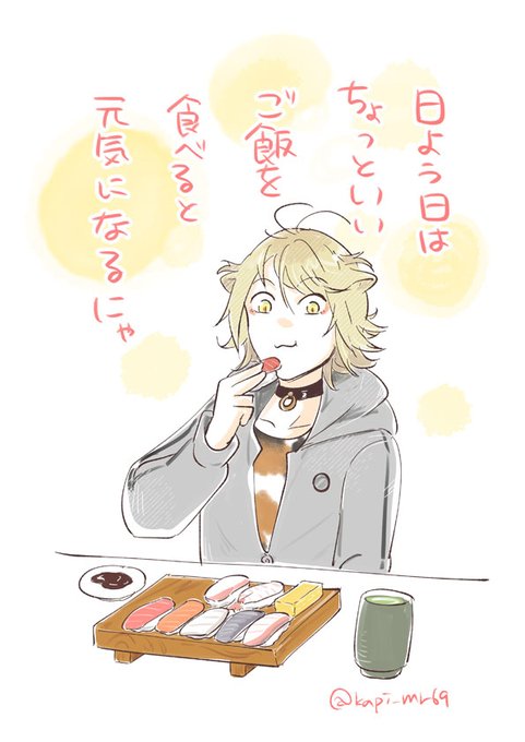 今日にこちゃんの日なのか……タグとかつけんけど これは雷が怖いって言ってたフォロワさんを法螺貝で誤魔化してあげようとしている☀️あにち