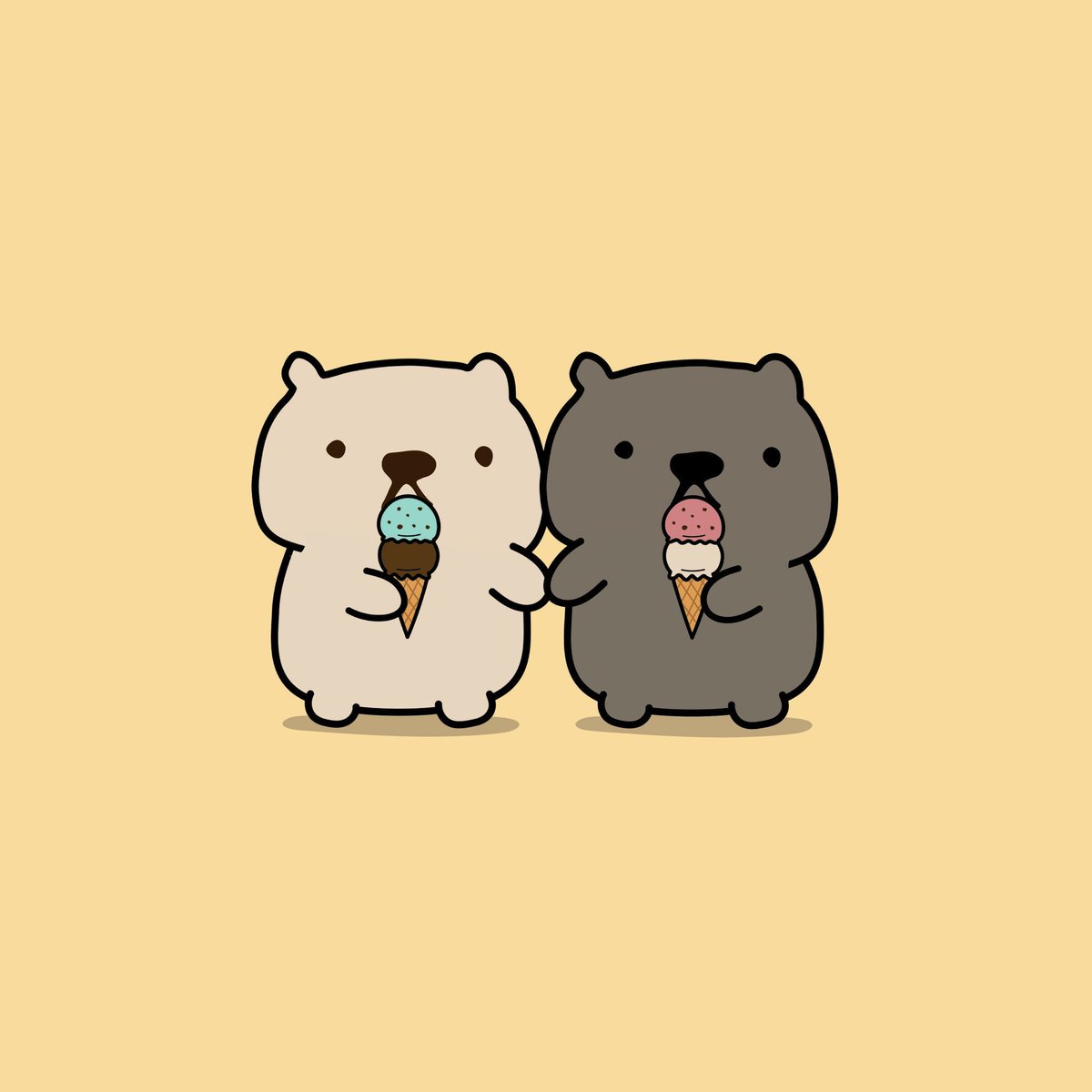 白カピバラさんはチョコがすき。 黒カピバラさんはバニラがすき。 #イラスト #ゆるいイラスト #イラスト好きな人と繋がりたい #カピバラ #アイス #夏