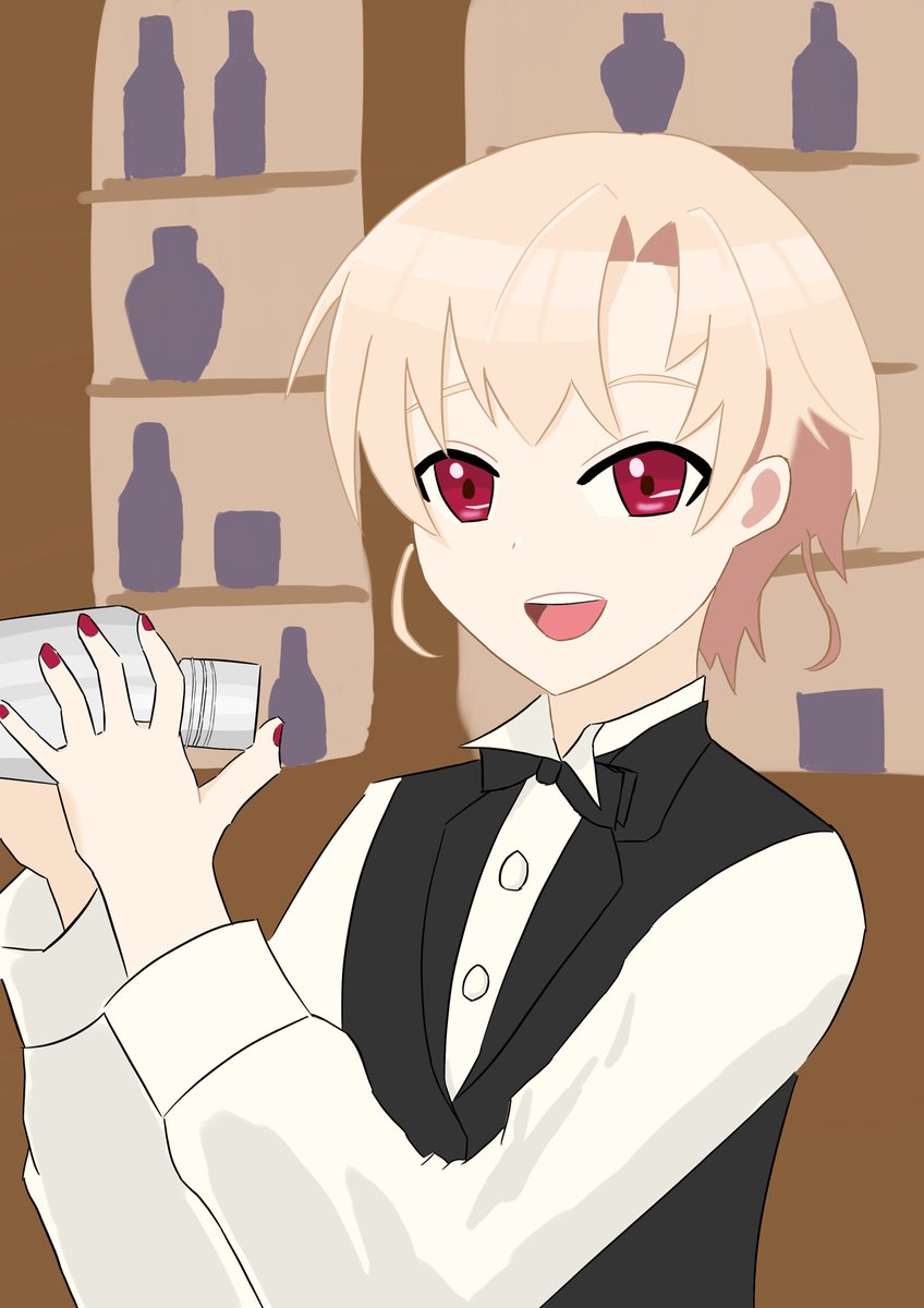#フレン見て 男装バーテンフレン概念その2 試しに背景っぽい物描いてみたけど楽しいからもっと描いてみたい お絵描き楽しいもっと上手くなりたい