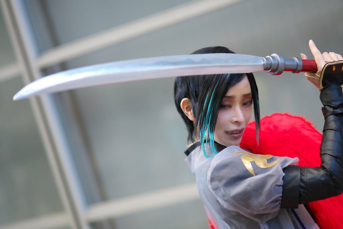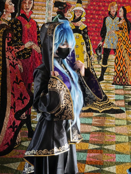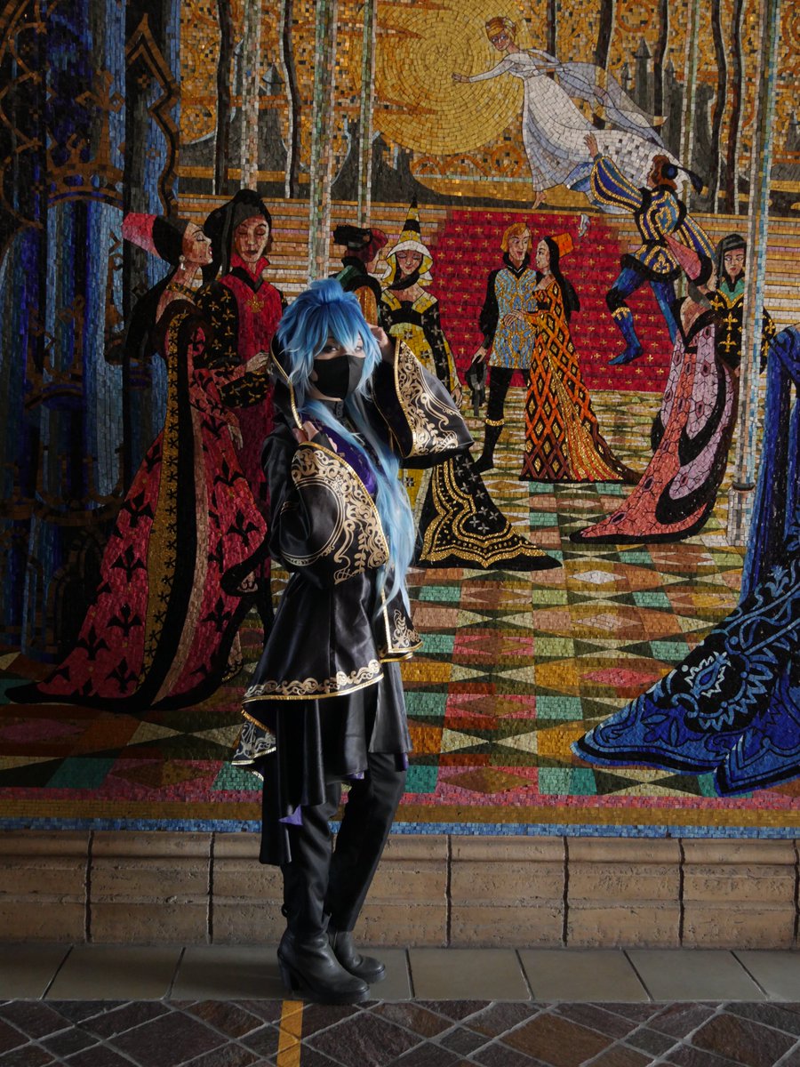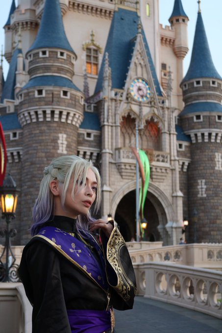これはブレックファーストしながら🐙氏に渡された端末でショーの抽選に念を送るイデヤクンです (結果ご用意されず、) 💀@kappanoko 🐙@CosplayerChika 📸@platinumove #Dハロ仮装2022 #Dハロ2022