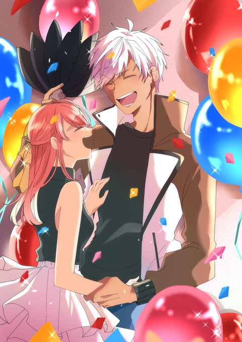 ⚠️仮面舞踏会カドスト微バレ え?あの風船に壁際に押しやられて楽しんでたのってこういうことであってます??2人で??空中で?? それを眺めるモブになりたい人生だった😂マモンくんの笑顔よ… 次男×MC(創作顔あり) #obeymefanart #obmプラス