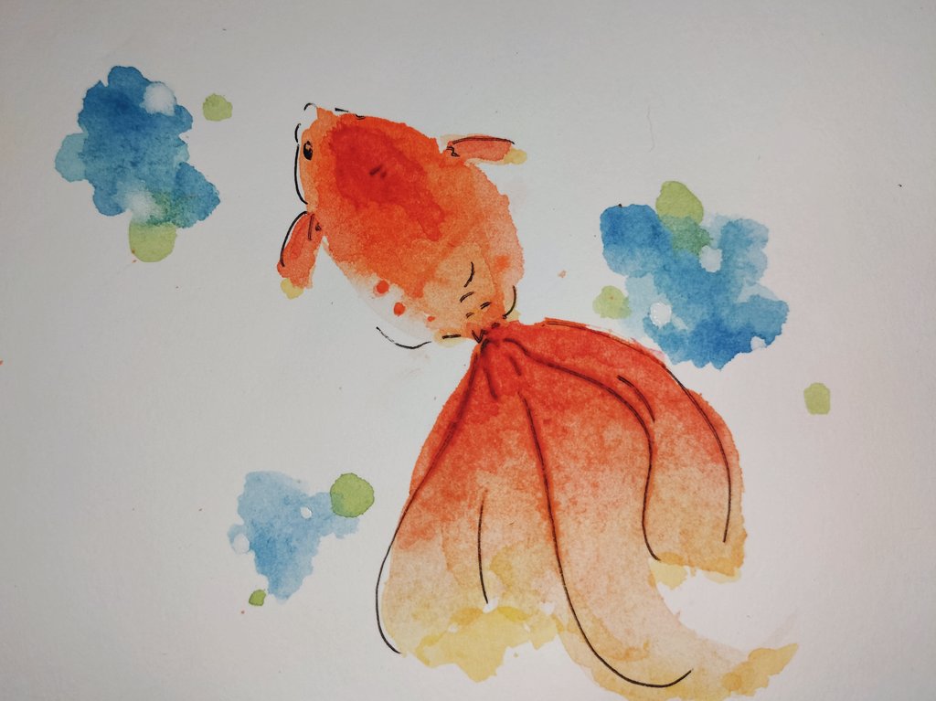 4日目!初めての水彩画 #水彩画 #イラスト成長日記 #金魚 #絵描きさんと繋がりたい