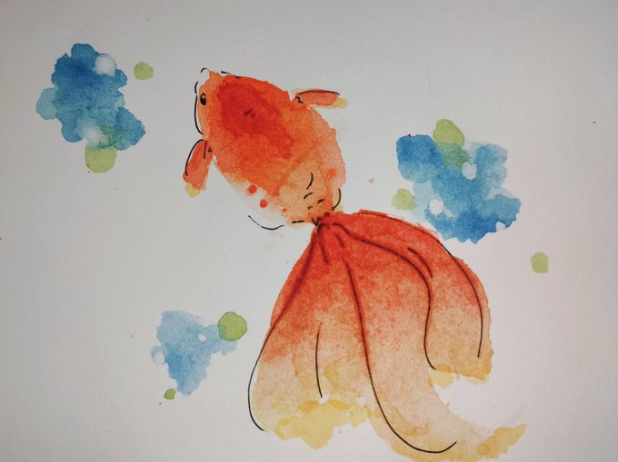 0 10 4日目!初めての水彩画 #水彩画 #イラスト成長日記 #金魚 #絵描きさんと繋がりたい 22/08/18 17:31