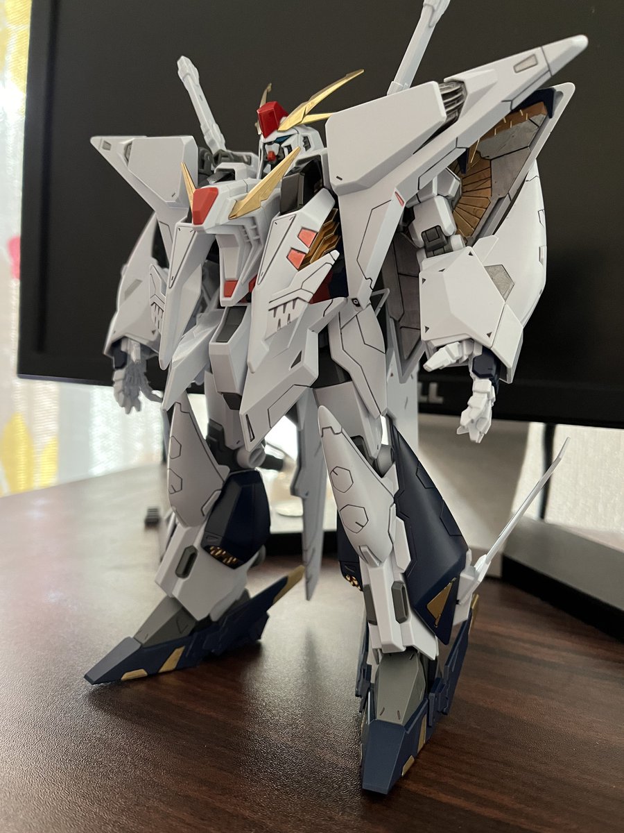 MGプロヴィデンス出来たった 足が付け辛い、ライフル持たせ辛い以外は最高です。フリーダムも欲しくなる🫠 画像有りませんが、バーニア内部等の細かい所だけ塗ってます。あとはつや消し吹いて終わる予定! #ガンプラ #ガンプラ好きと繋がりたい