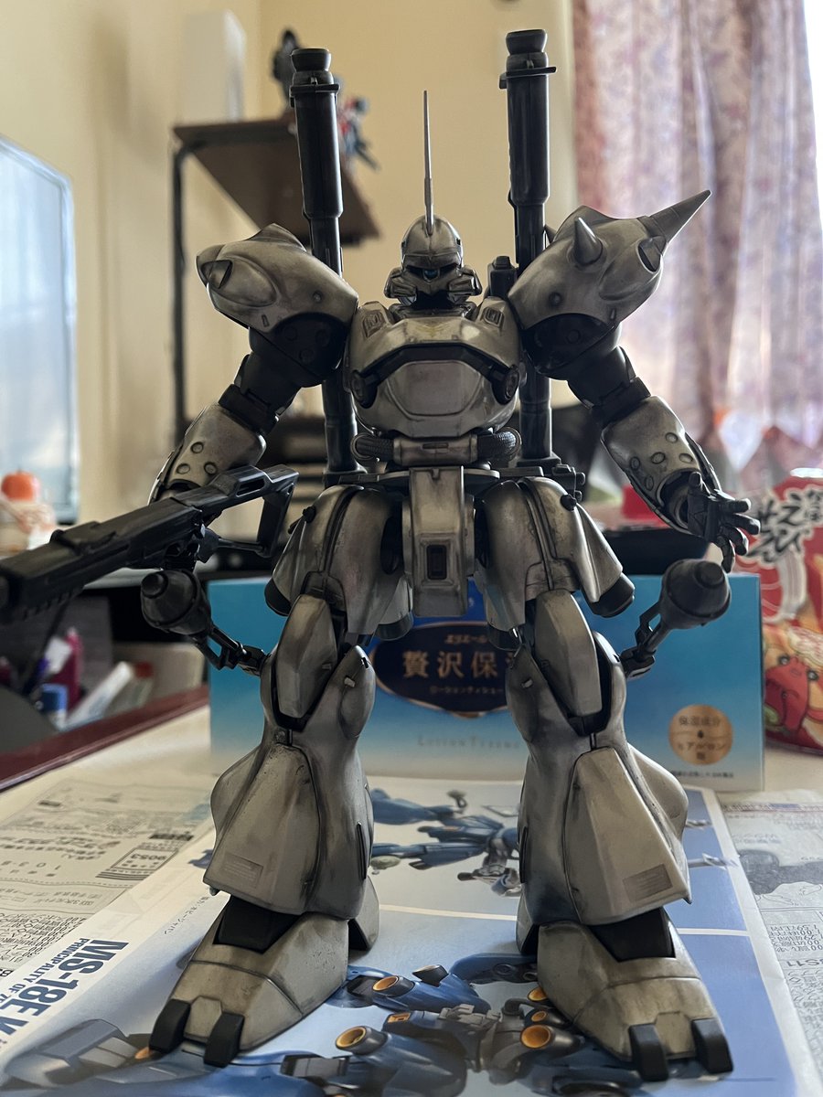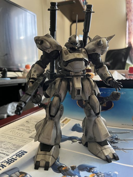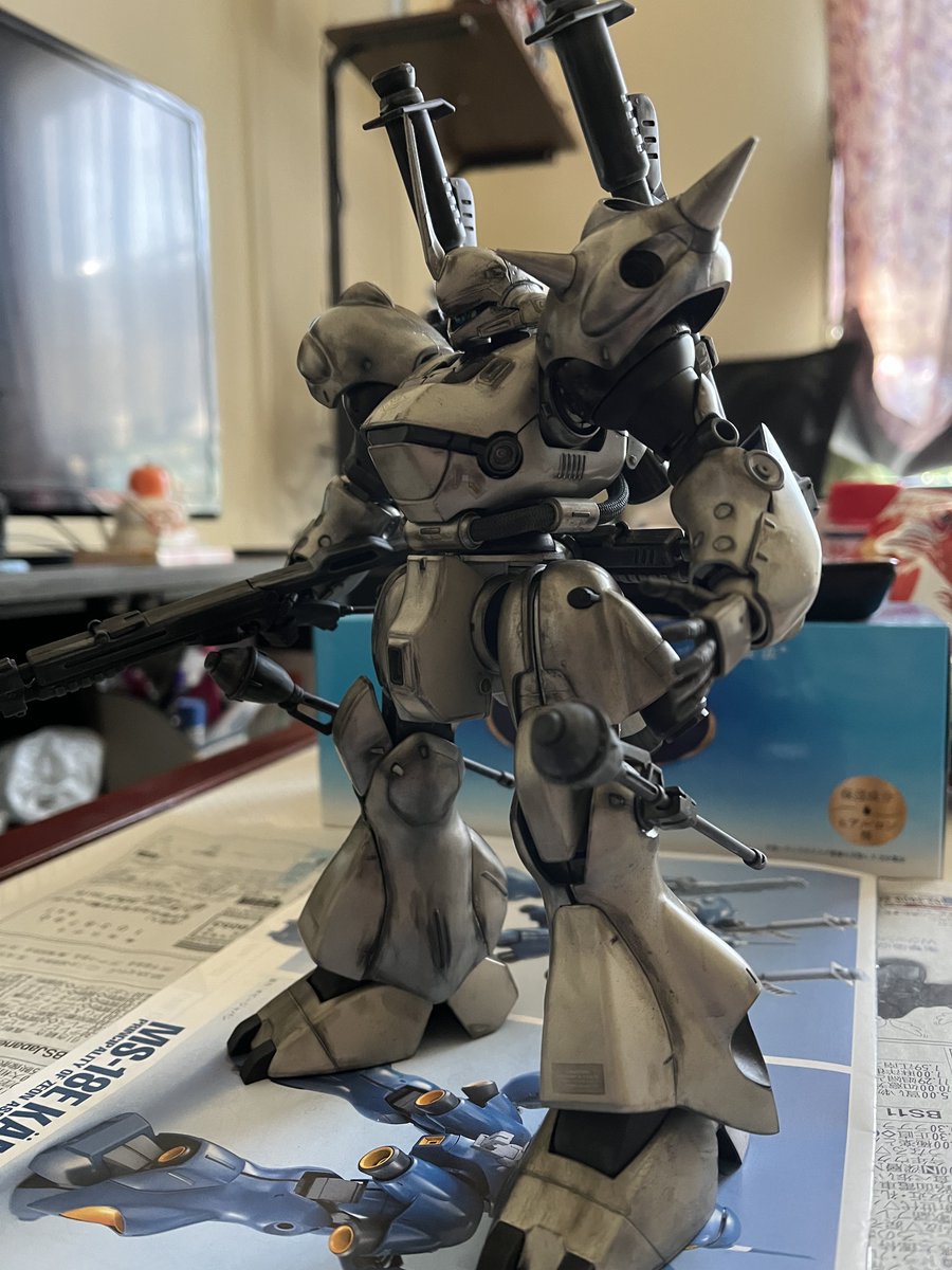 MGケンプファー出来た🤗 シルバー基調にしてつや消しブラックを各所に塗って、武装は白のウェザリング、本体はスス汚れのイメージでウェザリング 昔のMGなんで合わせ目とかは目立ちますが、スタイル良くて武装も多いしで良いキットだと思います。😎 #ガンプラ #ガンプラ好きと繋がりたい