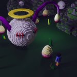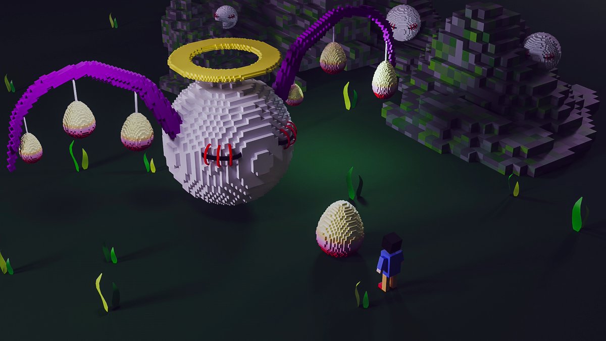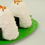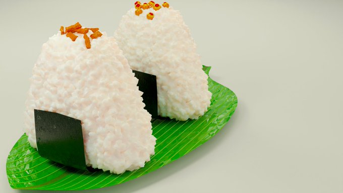 パーティクル系はやっぱ重い!あと、おにぎり特有の透明さのある黄色をどう出すか試行錯誤中 八日目「海鮮おにぎり」 #100日チャレンジ #ブレスオブザワイルド #blender初心者 #blender #b3d #3DCG