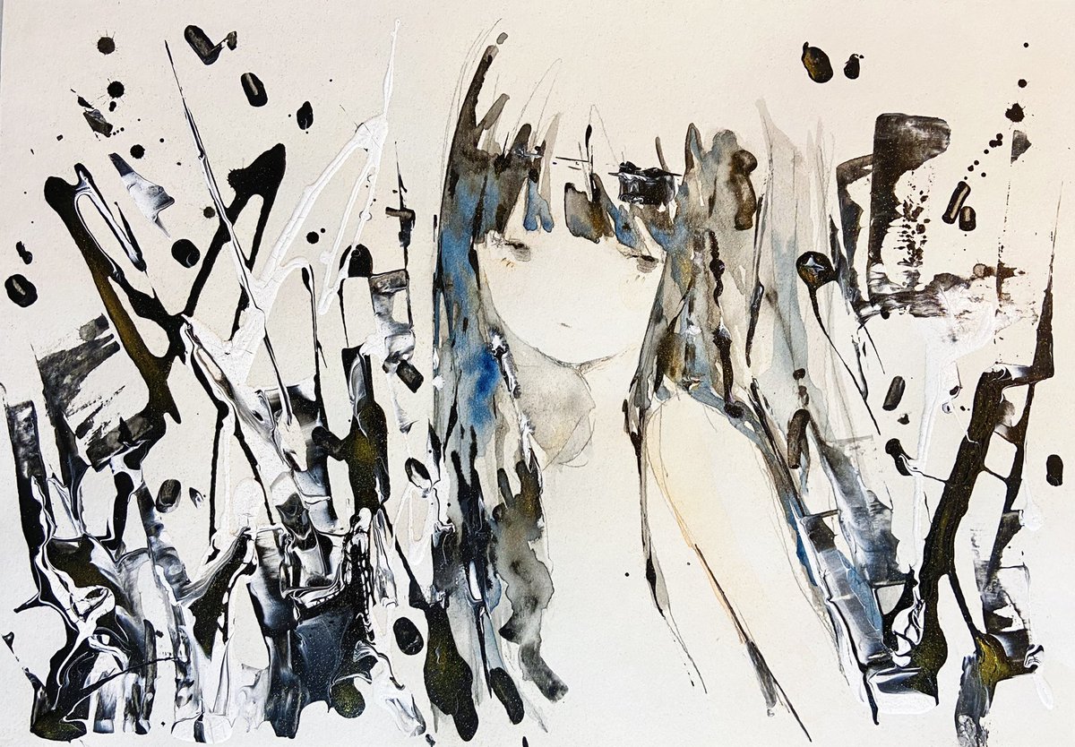 「墨」 a4 水彩 アクリル絵の具 #水彩画 #アナログ絵