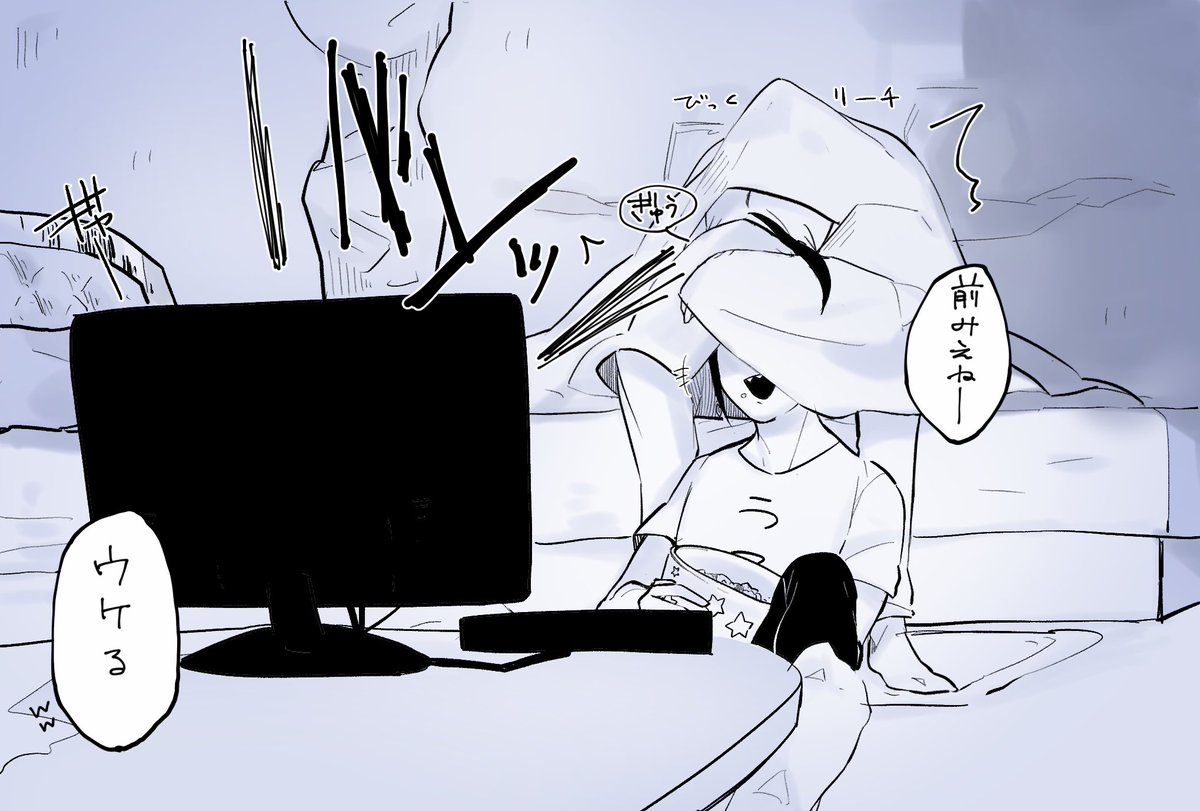 お題「映画」 部屋でホラー映画観てる。 意外に苦手なのはじぇいどというのも有りじゃないかなと思い。 #ジェイフロ版ワンドロライ