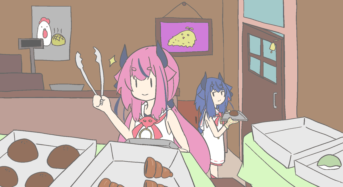 「パン屋でパンを選ぶ鳴花ヒメちゃん」 お題箱からです。 動画でヒメミコ描き過ぎて疲れたのでヒメミコを描きました。 あと一人ワンドロで描きました。